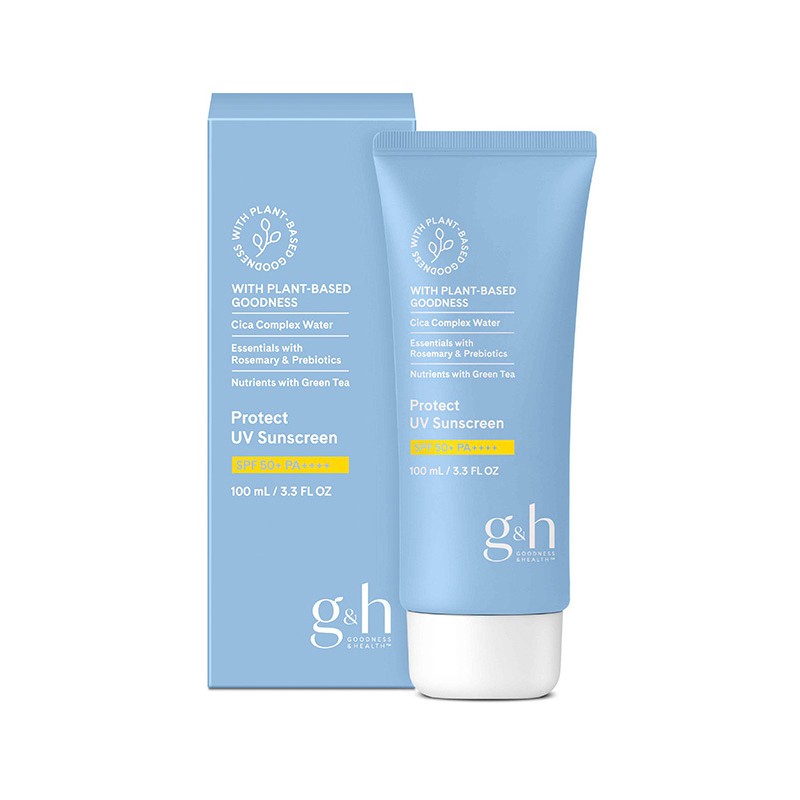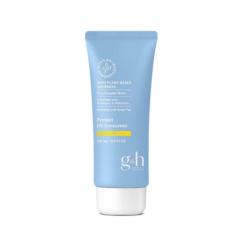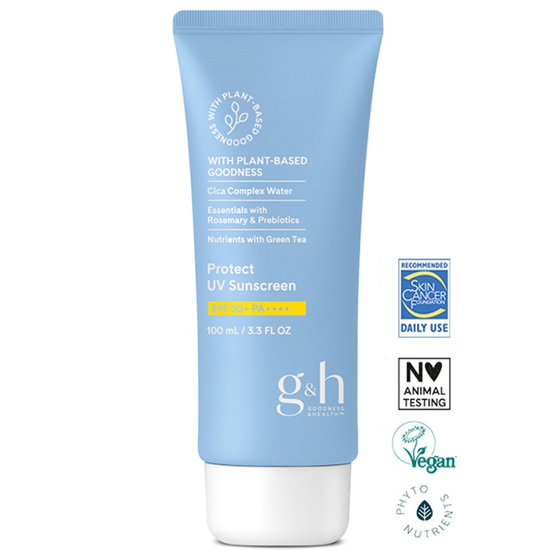 G&H Protect UV Sunscreen SPF50+ kombinerar det bästa av avancerade, vetenskapliga solskyddssammansättningar, Plant-Based Goodness™, antioxidant-ingredienser och prebiotika för att hjälpa till att skydda, återfukta och lugna huden samt vårda dess mikrobiom.