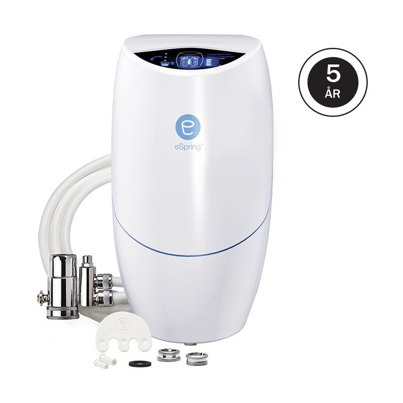 Med förlängd garanti 2+3 år. eSpring Water Treatment System kan reducera över 160 förorenande ämnen, varav fler än 145 är potentiellt hälsofarliga. Det eliminerar även mer än 99,99 % av sjukdomsalstrande vattenburna bakterier och virus i dricksvattnet.