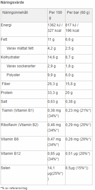 3.Framtagen som en ”ren” bar med högkvalitativa ingredienser, rik på fibrer (50 % RI) och innehåller inget tillsatt socker. Det är det som gör skillnaden – inga tomma kalorier eller sockerkickar.