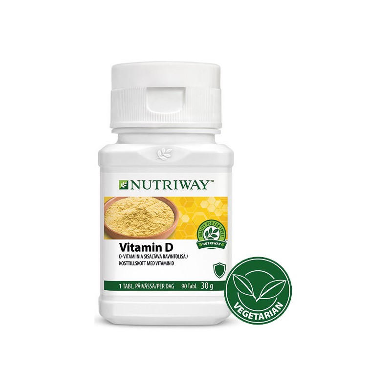 •NUTRIWAY™ Vitamin D ger en extra dos på 15 µg (600 IE)* vitamin D från naturliga källor som främjar ditt välbefinnande.