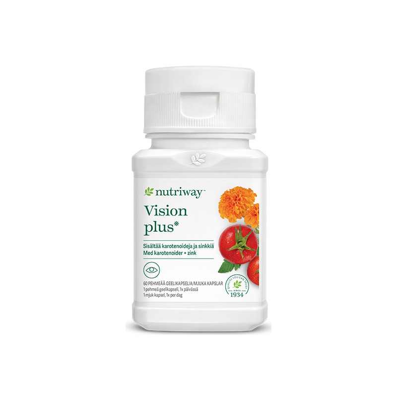 • Vision Plus passar smidigt in i din livsstil eller rutin. De mjuka kapslarna är enkla att svälja och ett utmärkt, snabbt och praktiskt sätt att berika din kost med näringsämnen som bidrar till att bibehålla normal synförmåga*. Dosering: en kapsel om dagen. Detta kosttillskott har dessutom utvecklats av världens bäst säljande märke för vitaminer och kosttillskott, nämligen Nutriway** – ett varumärke som människor över hela världen litar på.
